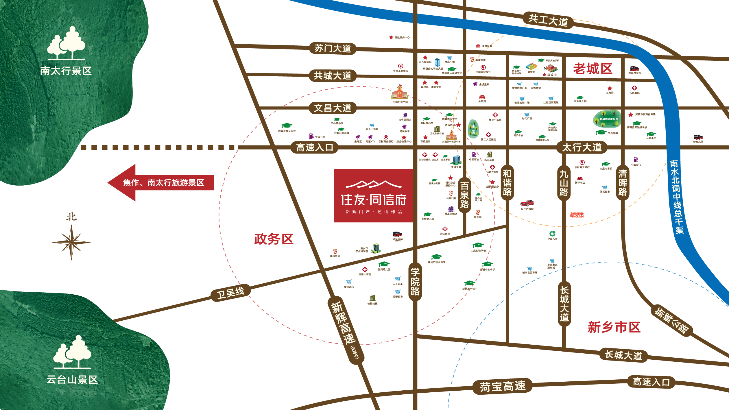 西、南2條城際路線:新輝高速(新晉高速,在建)、荷寶高速,輝縣市外圍最大的兩條城際高速,離項(xiàng)目最近,項(xiàng)目業(yè)主出入輝縣城區(qū)的便利性極強(qiáng)。
